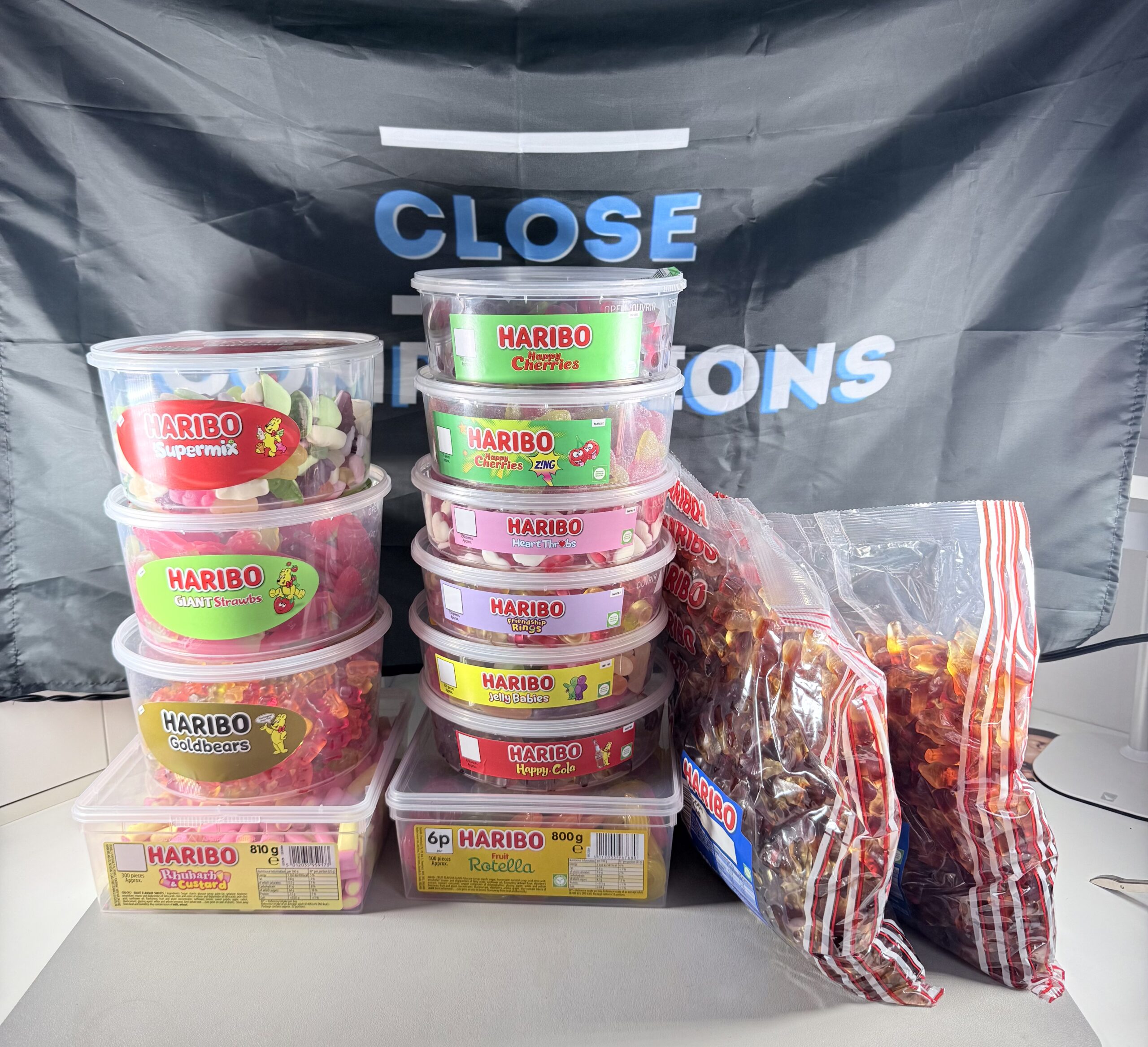 INCLUDES: 2X 3KG BAGS OF COLA BOTTLES & 11 TUBS.