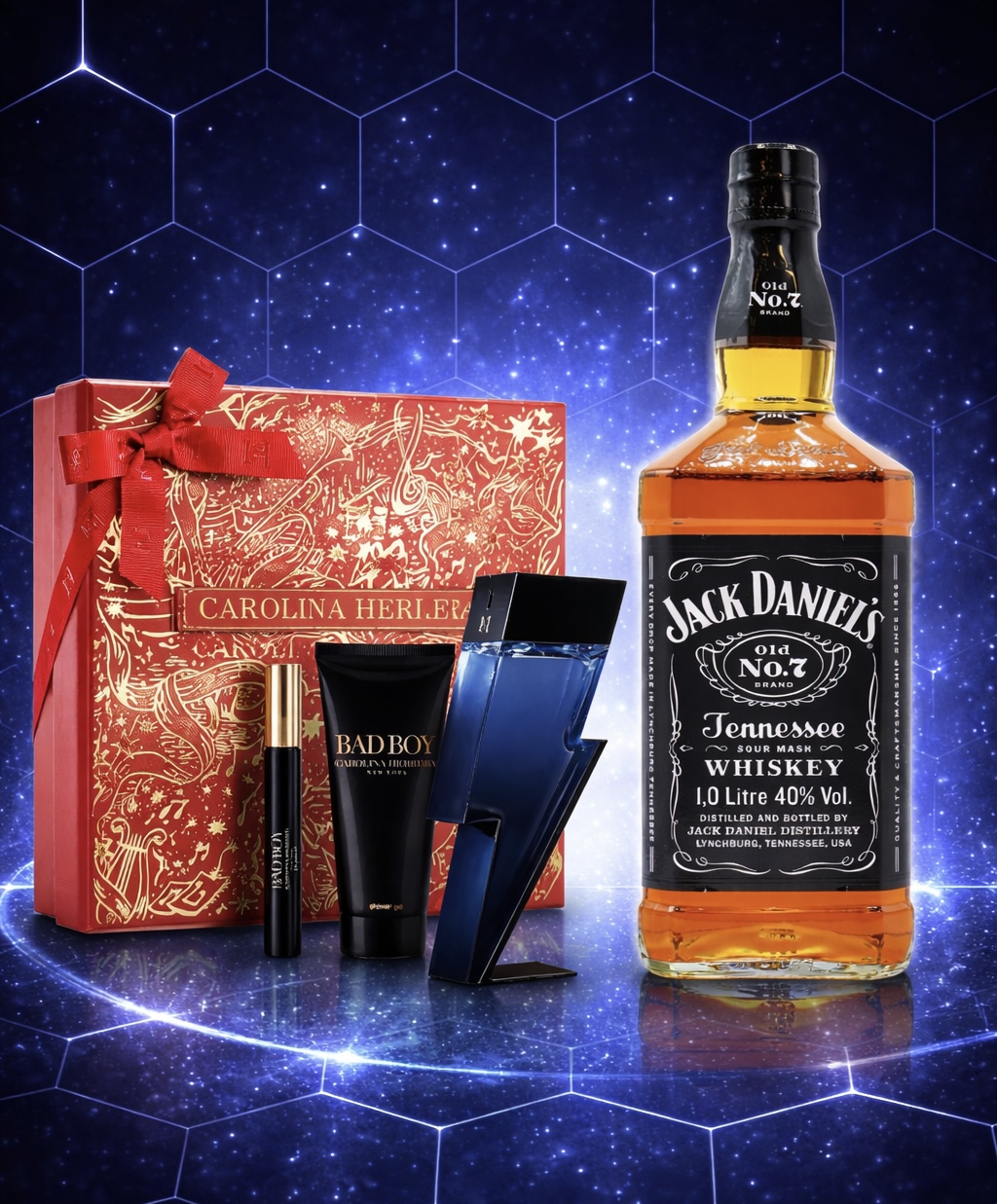 WIN MENS CAROLINA HERRERA COBALT GIFT SET WITH 1L JACK DANIELS